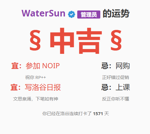 (在前一周刚刚获得的紫名和管理员,1571 天的打卡记录即将变为过去式,确实难以释怀啊!)