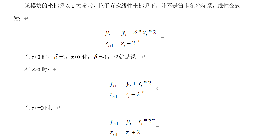 当CORDIC运算在齐次线性坐标系下时,可使用CORDIC实现乘法运算,这只乘法器有一些弊端,就是输入z只能是介于-2~2之间。