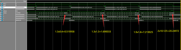 原CORDIC模块的输入为x、y、z,现在将原模块的输入y屏蔽掉,输出y就会产生乘法效果,然而,这个乘法器的输入z只能介于-2~2之间,这个乘法器为针对小数的乘法器,z只要介于-2~2之间,后面有多少位小数don’t care at all!