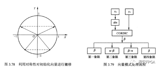 旋转模式和向量模式的相同之处在于:两者都是伪旋转,旋转模式下是的初始向量必须落入第一或者第四象限,向量模式使得初始向量必须贴近X轴。