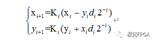 在旋转模式中曾提到:由于每次伪旋转都导致向量模长发生了变化,以Ki表示第i次伪旋转模长补偿因子,所以第i次伪旋转真实旋转的结果应该为: