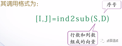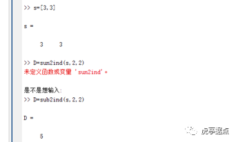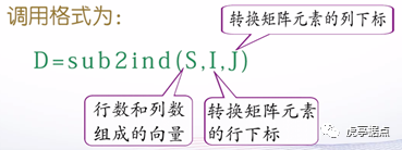 sub2ind:将矩阵中指定元素的行、列下标转换成存储的序号,调用格式为: