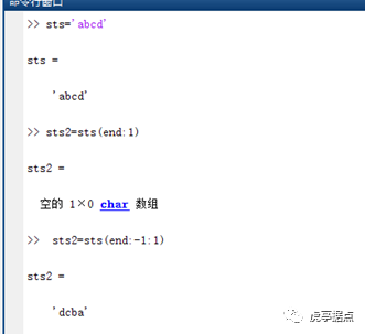 che(end:-1:1)表示从最后一个字符到第一个字符,步进为-1