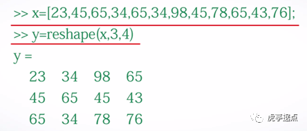reshape(A,m,n):在矩阵总元素保持不变的情况下,将矩阵A重新排成m x n 的二维矩阵。