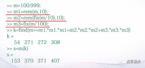 find函数的作用是在m中找到为1的序列号,之后在进行显示。