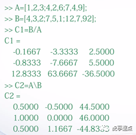 对于矩阵来说,左除与右除表示两种不同的除数矩阵和被除数矩阵关系: