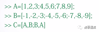 (2)、利用已经建好的矩阵建立更大的矩阵:一个大矩阵可以由已经建立好的小矩阵拼接而成。