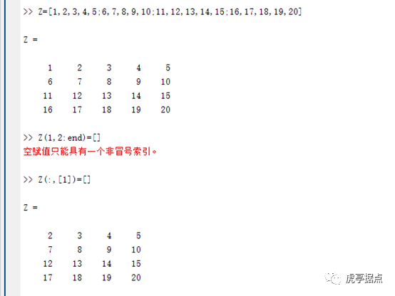 使用空矩阵进行矩阵元素删除,删除的方式;