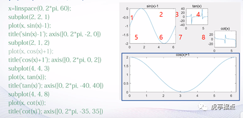 subplot(m,n,p),其中,m和n指定将图形窗口分成mxn个绘图区,p指定当前活动区。