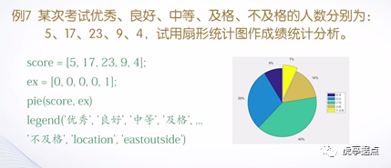 explode是与x同等大小的向量,与explode向量的非0对应的部分将从饼图中心分离出来,省略explode时,饼图是一个整体,即没有分离部分。