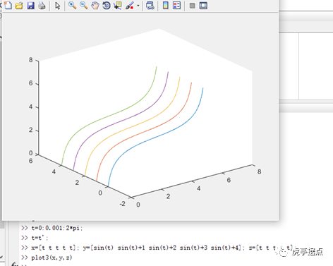 其中,x、y、z组成一组曲线的坐标,通常,x、y、z为一组长度相同的向量。当参数x、y、z为同型矩阵时,以x、y、z的列元素为坐标绘制曲线,曲线的条数等于矩阵的列数。