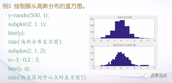 其中,参数y是要统计的数据,x用于指定区间的划分方式,若x为标量,则将统计区间分为x个小区间,若x为向量,则向量中每一个值指定向量的中心值,元素的个数为数据分组数,x缺省时,默认按照10个区间进行统计。