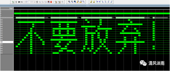 编写仿真文件,运行仿真,展开 out 信号,缩放到合适比例,即可看到字符显示。效果即同文章开头所示。