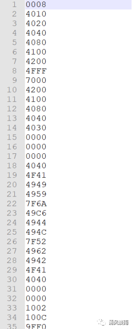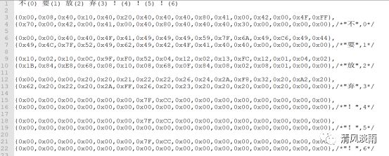 保持字模后,生成的字符点阵文件如下: