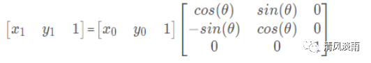 在该方法中,首先将原始坐标以及目标坐标放入了极坐标中,并且通过在极坐标中的关系,找到了同时满足X0,Y0,X1,Y1四个参量的方程组,以此来解出对应的坐标关系,并以此为基础得到了输入与输出之间的矩阵运算关系如下: