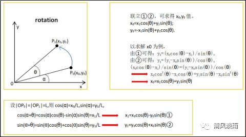 在该设计中,要求图像拥有0到360的任意角度的旋转,坐标变换需要角度的正弦和余弦值。