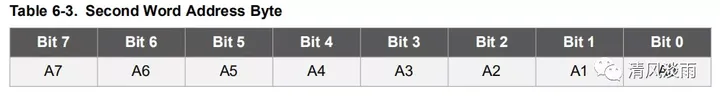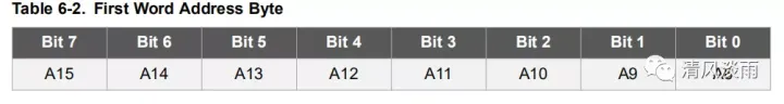 该EEPROM的器件地址定义如下: 地址的高4位是预定义好的,值为"1010",bit3,bit2根据引脚A2,A1连接的电平来决定,在该设计中,A2,A1均为0,bit1位为寄存器地址的最高位(A16),bit0位为读写选择位。写时为0,读时为1。
