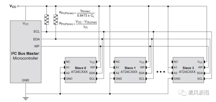 时钟支持标准模式(100KHZ),快速模式(400KHZ),极快速模式(1MHz)。
