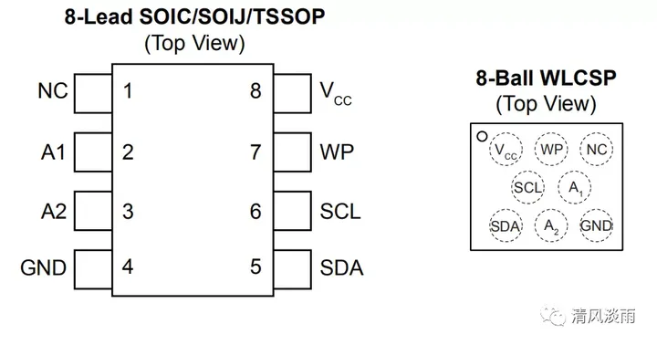 --1,000,000次写入。 --数据保持100年。 2,该芯片的引脚分布(两种不同的封装)