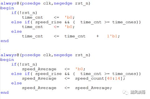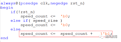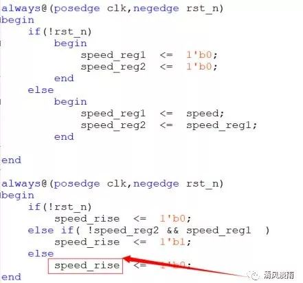 (1)上升沿检测。信号speed_rise为上升沿标志信号。当speed_rise为高时,说明存在speed信号的上升沿。信号speed为测速模块的输出信号。用两级寄存器接收传感器信号,不仅达到了消抖的专用,同时也达到了上升沿检测的目的。