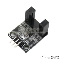 光电测速传感器有三个引脚VCC,GND,OUT。OUT为传感器的输出端,在传感器有障碍物遮挡时,输出高电平,在没有障碍物遮挡时,输出低电平。电机马达每转一圈,遮挡一次传感器。