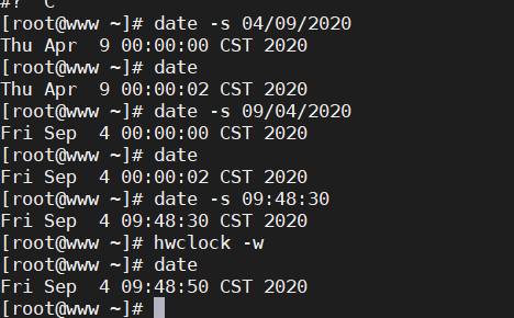 命令 : "date -s 09/04/2020"