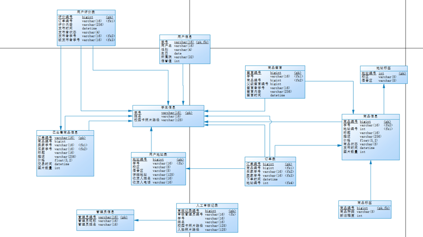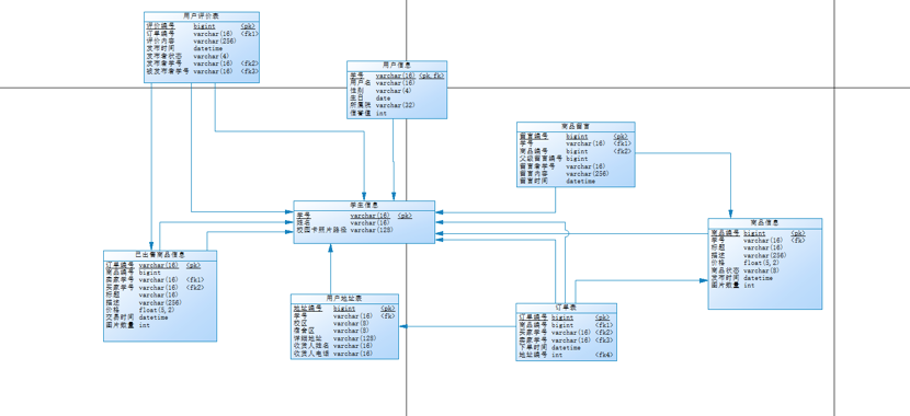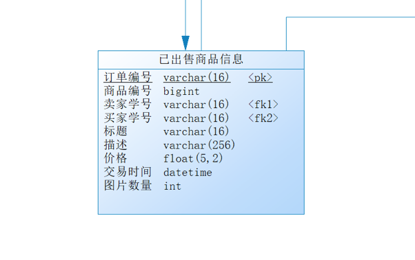 第二次的设计是对第一次的改进。从用户的角度出发,考虑我们的数据库还有哪些不足,并对相应字段的格式长度、对表的主键外键等进行了修改,这时候考虑的更多的就是数据库的实用性,比如最常见的就是数据库的查询的快慢。举例说明,原本我们将所有的商品放到同一张数据表中,但是后来想到的时候,对于数据库的查询来说,已经卖出去的商品不会再次进行修改,因此我们将已经卖出去的商品重新分了一个数据表,并添加订单编号的字段,将其升级为一张已完成订单表,实现了对于查询速度的改进。