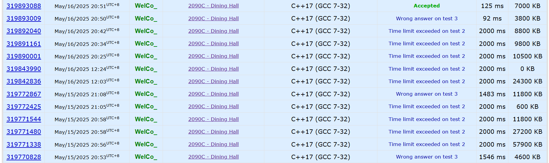 当时就是感觉能写,于是没看题解,一直试,一直TLE。可见最终状况之惨烈