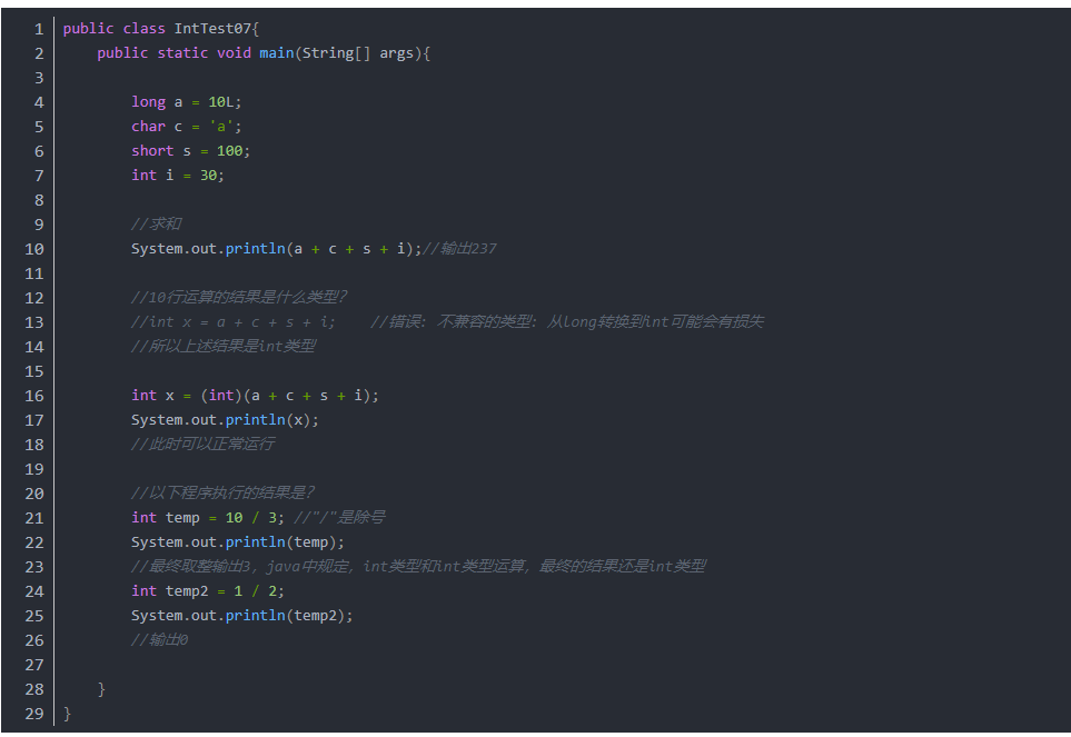 java中规定,int类型和int类型的运算最终的结果还是int类型.
