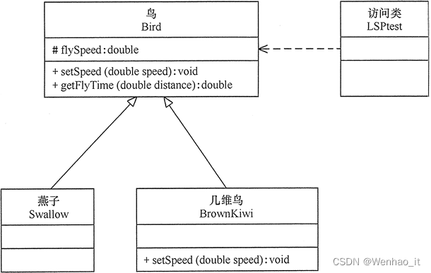 关于里氏替换原则的例子,最有名的是“正方形不是长方形”。当然,生活中也有很多类似的例子,例如,企鹅、鸵鸟和几维鸟从生物学的角度来划分,它们属于鸟类;但从类的继承关系来看,由于它们不能继承“鸟”会飞的功能,所以它们不能定义成“鸟”的子类。同样,由于“气球鱼”不会游泳,所以不能定义成“鱼”的子类;“玩具炮”炸不了敌人,所以不能定义成“炮”的子类等。