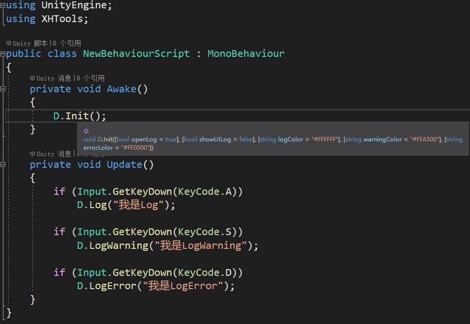 接着在你们的工程启动脚本中进行初始化(记得引入命名空间XHTools)。在初始化的时候你会发现有不同的设置。分别代表: