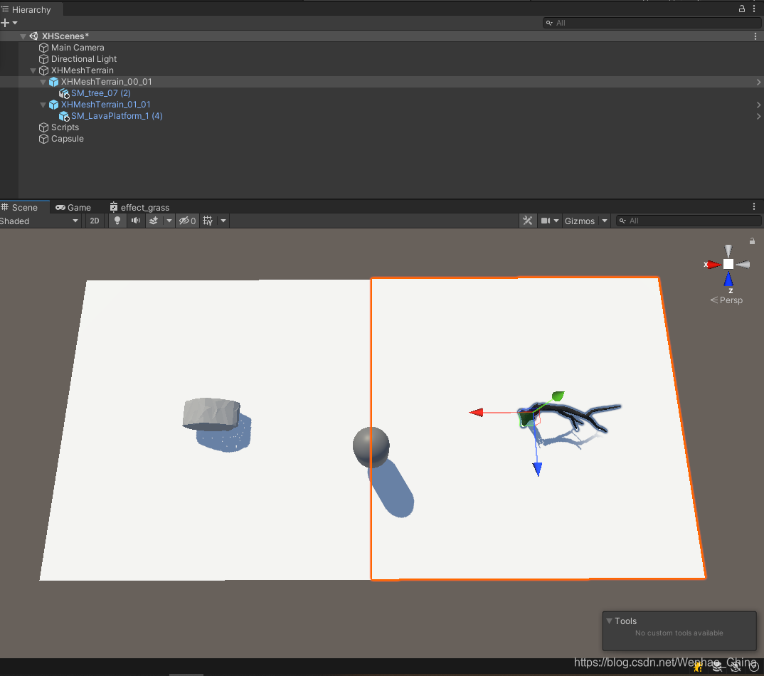 ④:然后先隐藏其中一块地形图,打开进行烘焙,并且移动地形图上的物体后我们发现确实烘焙完成了。