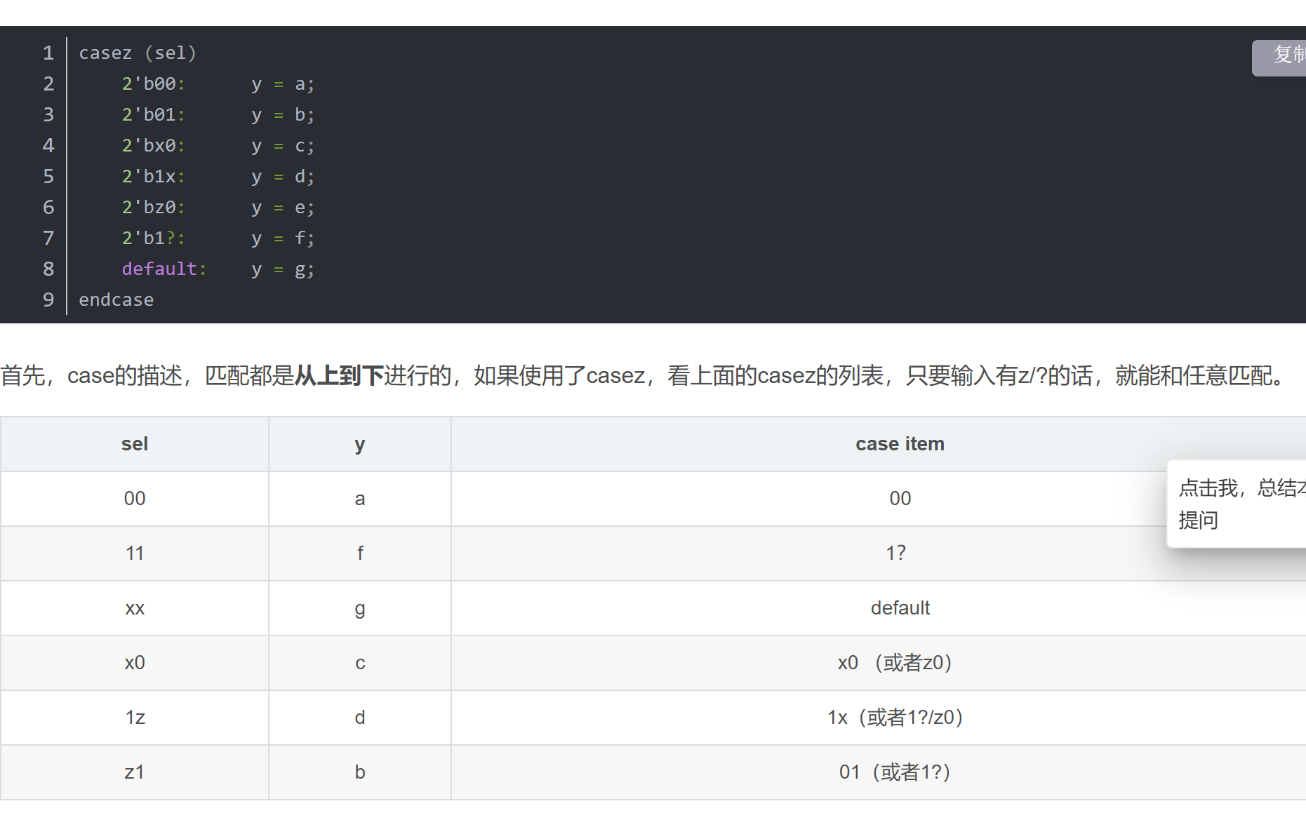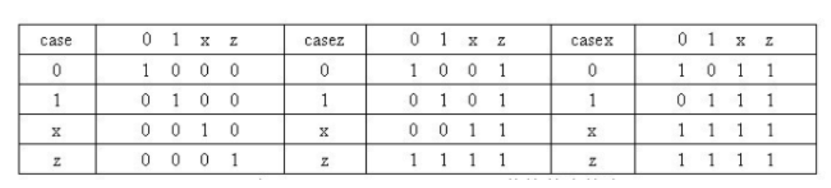 case将z和x都作为通配符, 即可以匹配作为0/1/x/z,当然也可以是占位符“?”