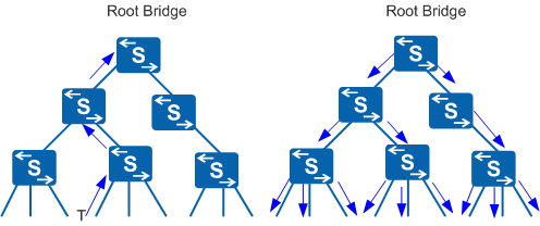 还有一种很常见的情况,接入层交换机连接的电脑因为开机或关机,会造成所连接的交换机端口因此而UP/DOWN,如果接入电脑较多,就会产生大量的TCN BPDU,造成STP频繁收敛,严重影响网络的正常使用。
