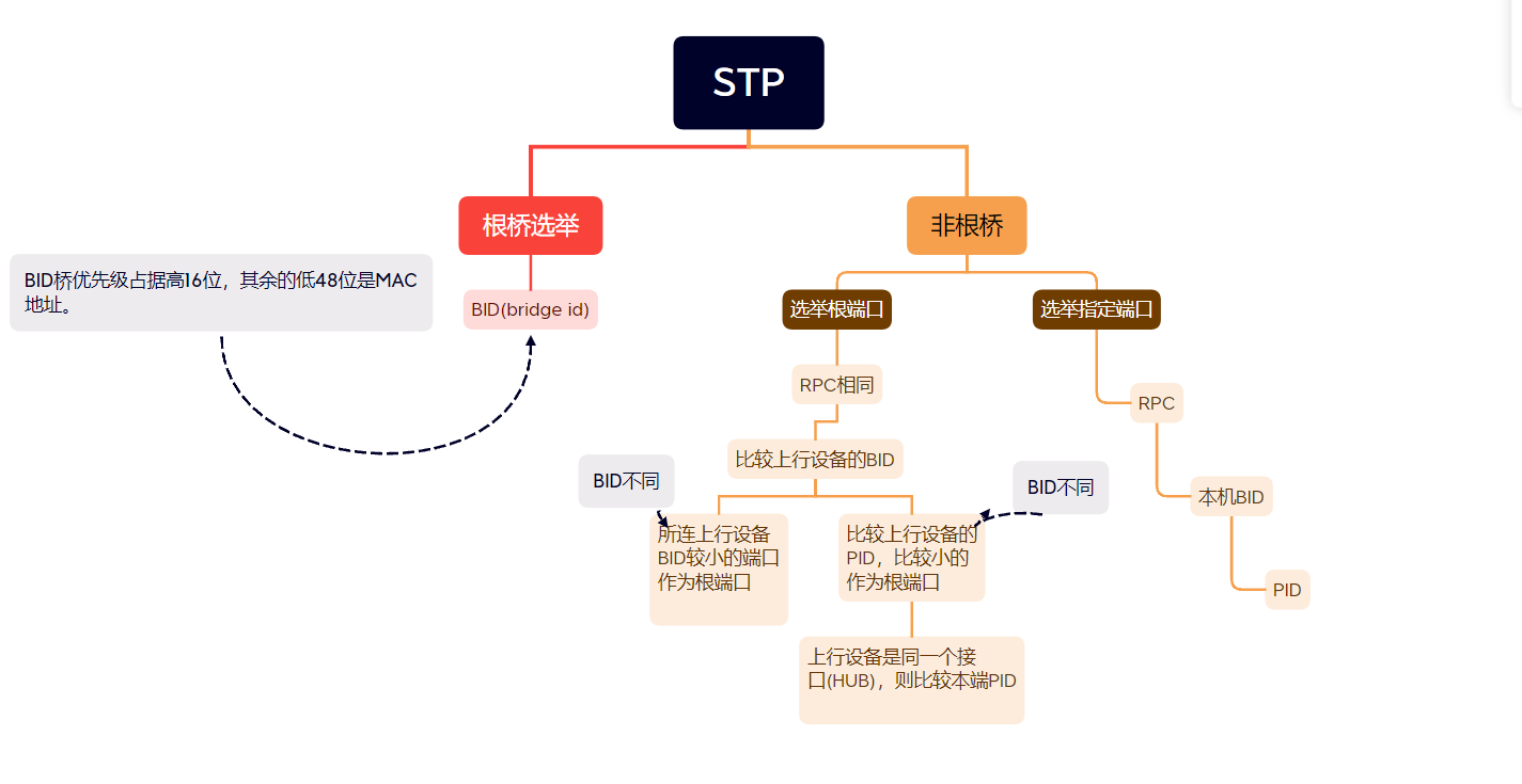 本机PID:如果两个或两个以上的端口连接到同一台交换机上,则选择发送者PID最小的那个端口作为根端口。如果两个或两个以上的端口通过Hub连接到同一台交换机的同一个接口上,则选择本交换机的这些端口中的PID最小的作为根端口。