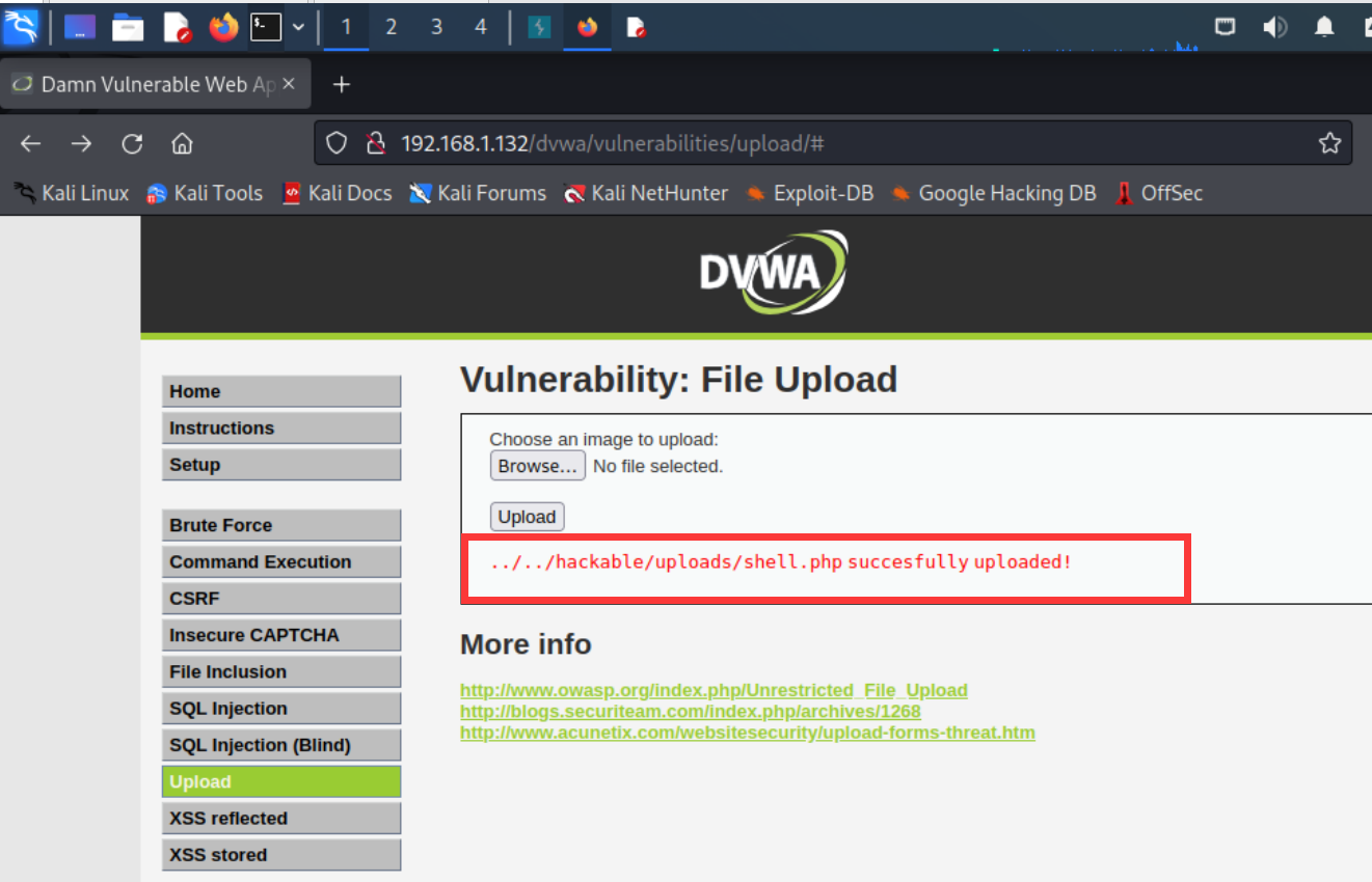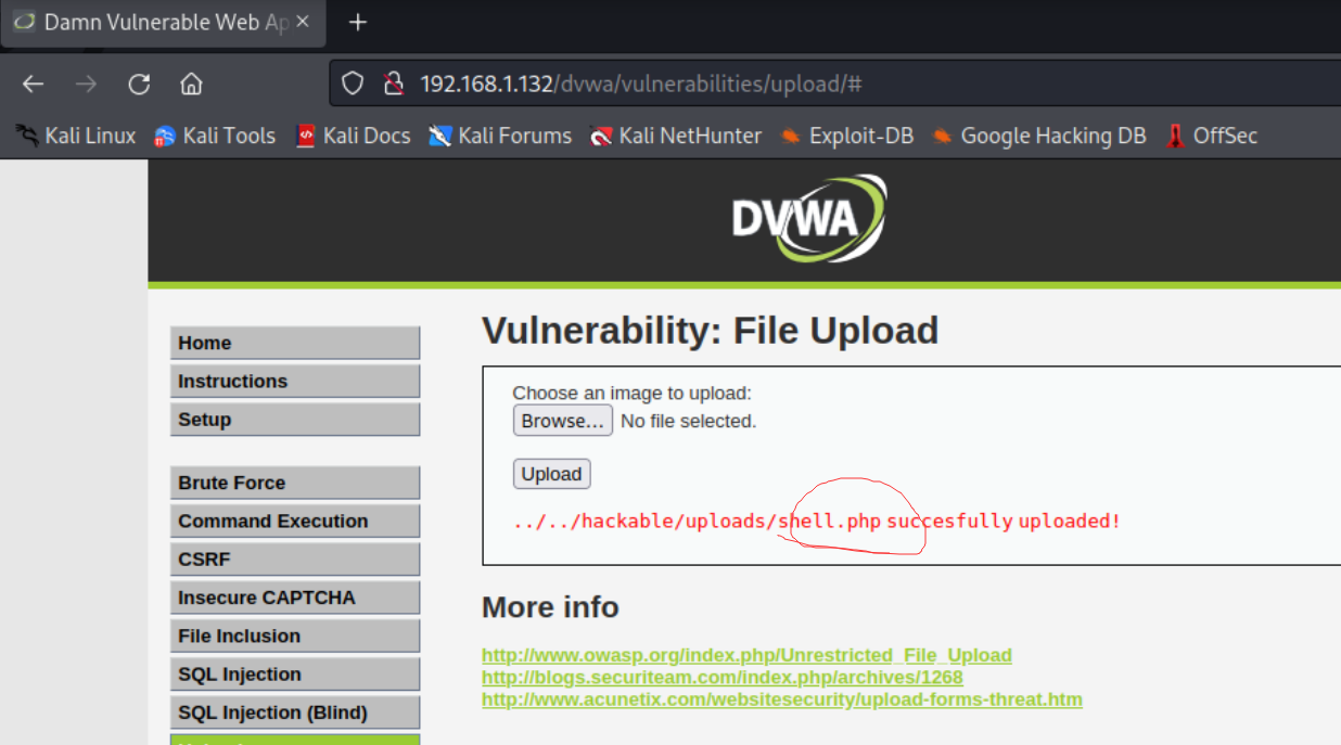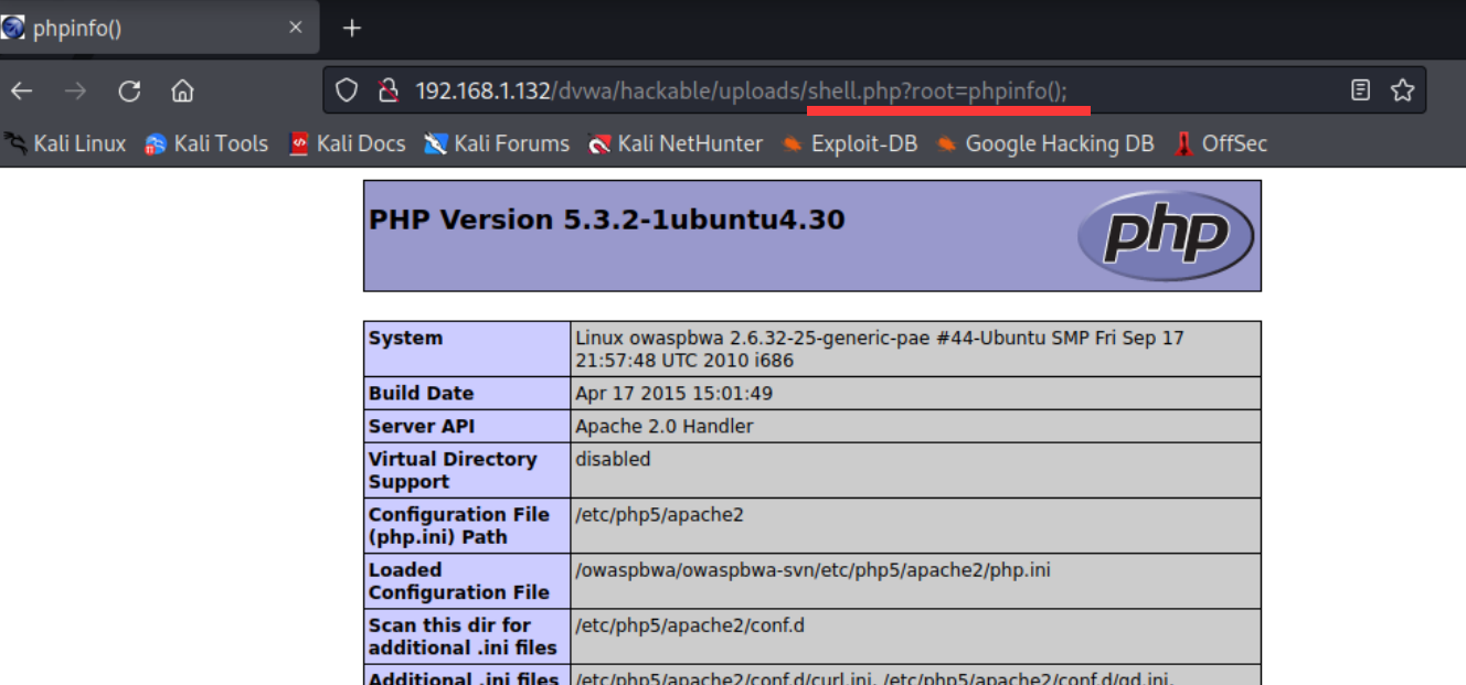 http://192.168.1.132/dvwa/hackable/uploads/shell2.php?cmd=phpinfo();