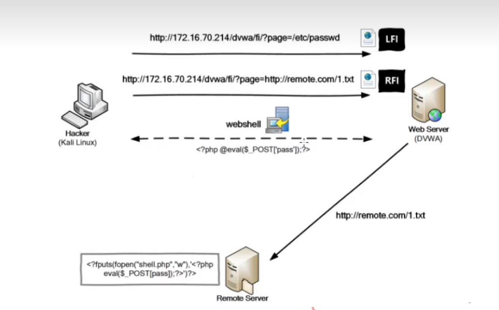 远程文件包含RFI ( Remote File Inclusion )当被包含的文件在第三方服务器时,叫做远程文件包含