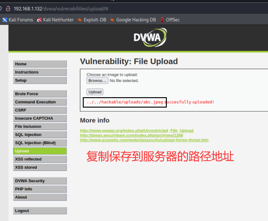 /var/www/dvwa/hackable/uploads //dvwa文件上传访问的目录abc . jpg