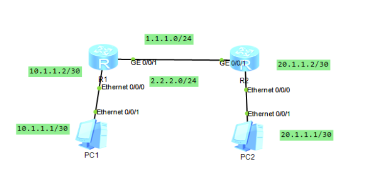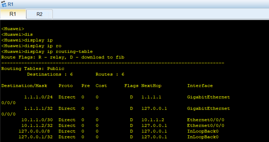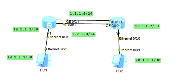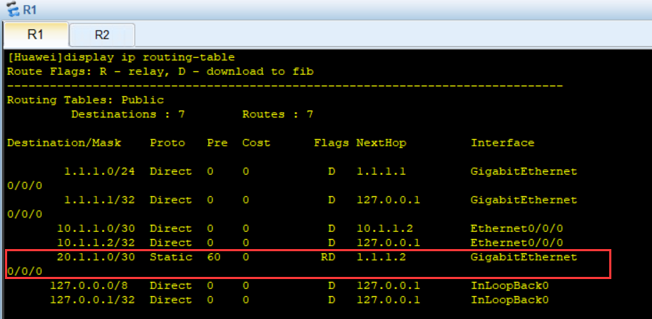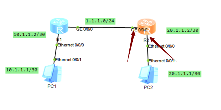 或者 [Huawei]ip route-static 10.1.1.0 30 1.1.1.1