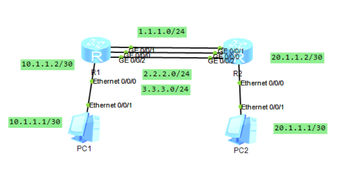 ip route-static 20.1.1.0 255.255.255.252 1.1.1.2ip route-static 20.1.1.0 255.255.255.252 2.2.2.2ip route-static 20.1.1.0 255.255.255.252 3.3.3.2