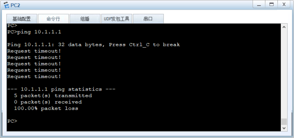 当然此时PC 2 ping PC 1 是不可到达,因为R2 没有过去的路。