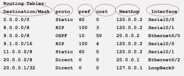 一条路由信息三要素:目的地/掩码、出接口、下一跳