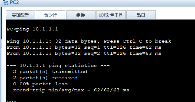 此时PC2 只能ping E0/0/0,G0/0/0接口的ip