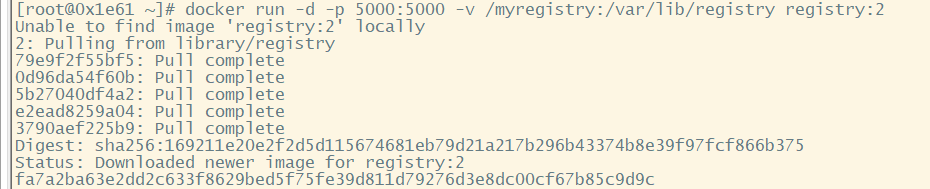 docker run -d -p 5000:5000 -v /myregistry:/var/lib/registry registry:2