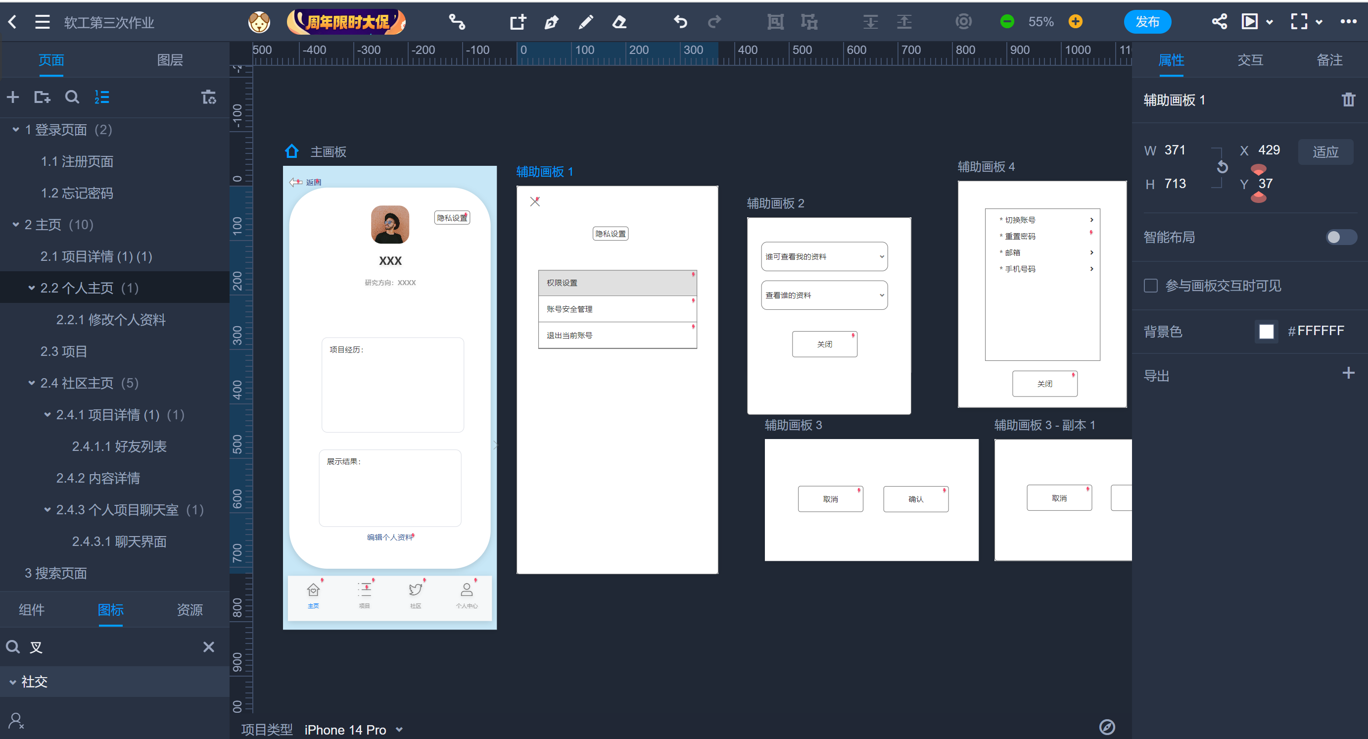 在原型设计阶段,我们使用摩客(Moqups)创建了详细的界面和功能原型。这不仅提升了设计的直观性和准确性,还促进了团队成员之间的沟通与反馈,确保了最终产品的用户体验符合预期。