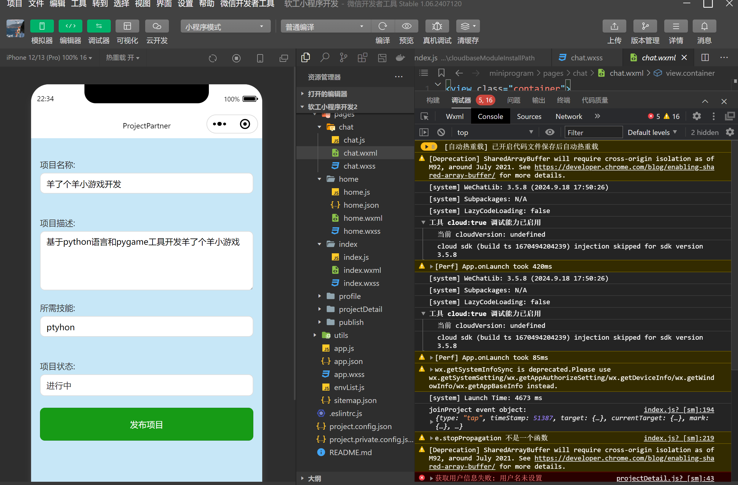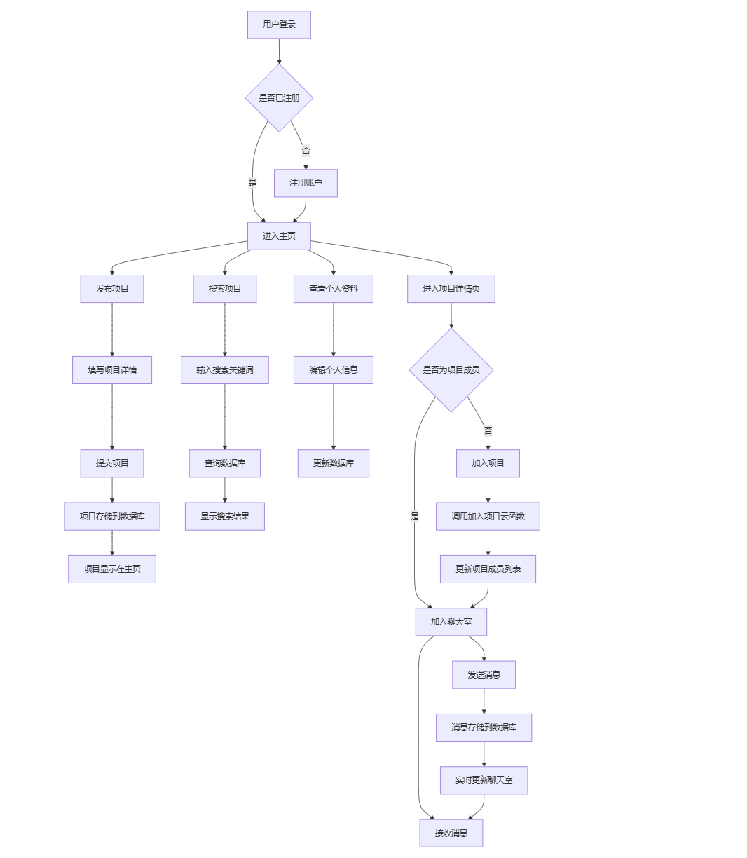 - 数据库:使用云开发数据库存储用户信息、项目详情和聊天室消息。