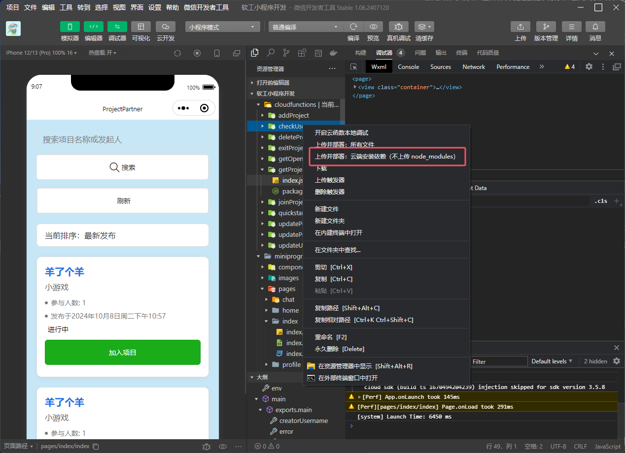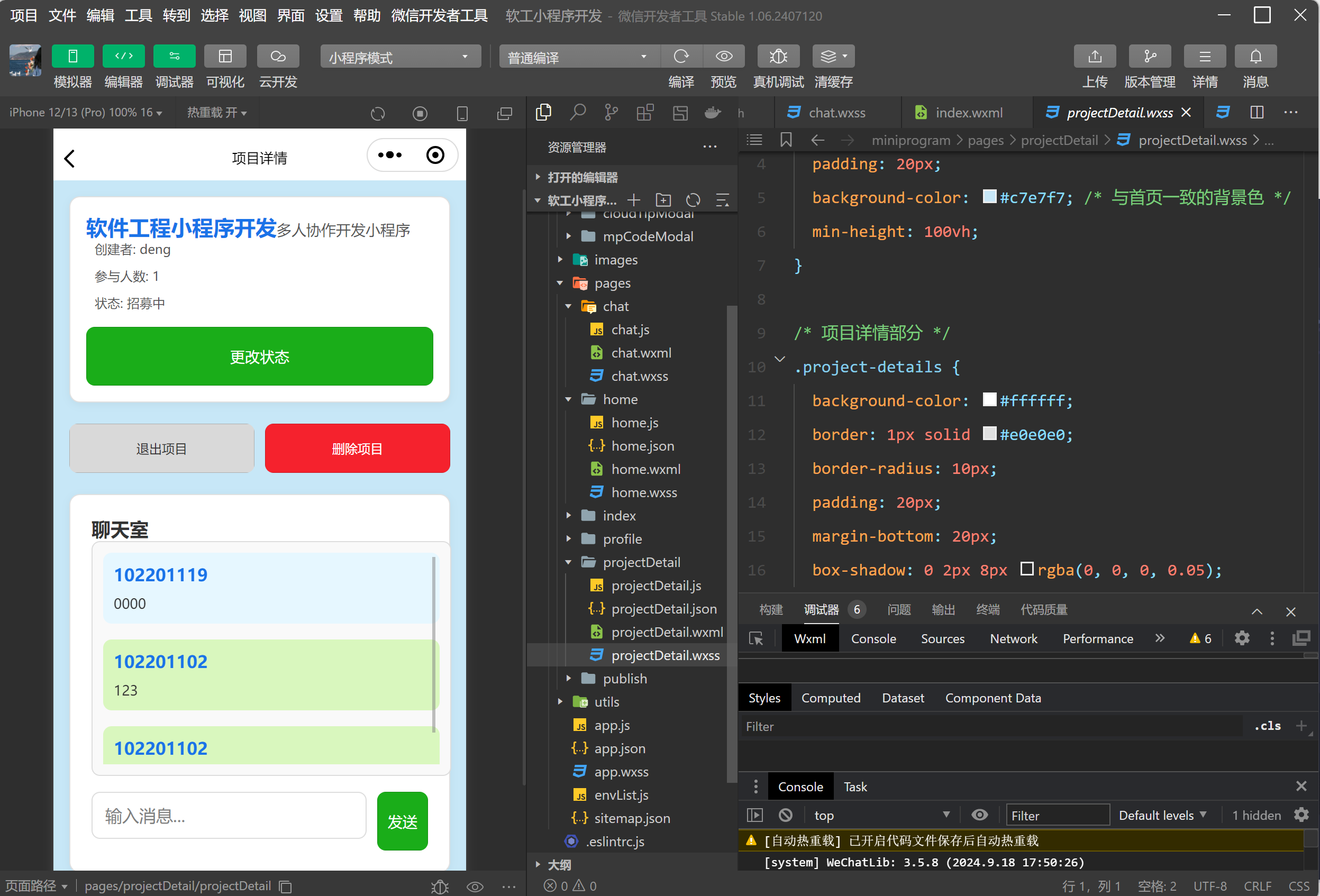 - 云函数开发:负责编写和维护微信云函数,包括获取项目详情、加入/退出项目、删除项目以及更新项目状态等功能。