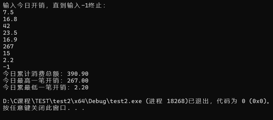 printf("今日累计消费总额:%.2f\n", total_pay);
